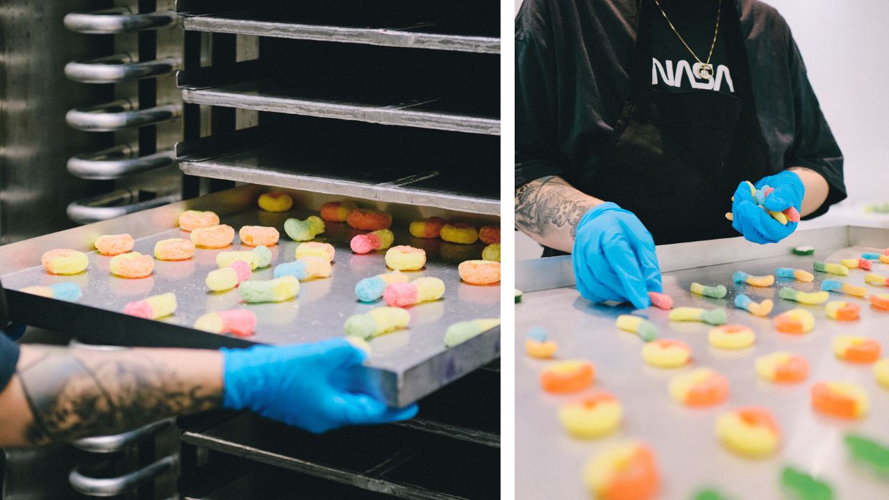 Ces confiseries lyophilisées offrent une expérience sensorielle étonnante : croustillantes, aériennes, explosant littéralement en saveurs. Grâce au procédé de lyophilisation, des friandises bien connues prennent une nouvelle personnalité — plus légères, plus intenses, plus ludiques. Impossible de ne pas vouloir les partager… même si on finit souvent par garder le sac pour soi.