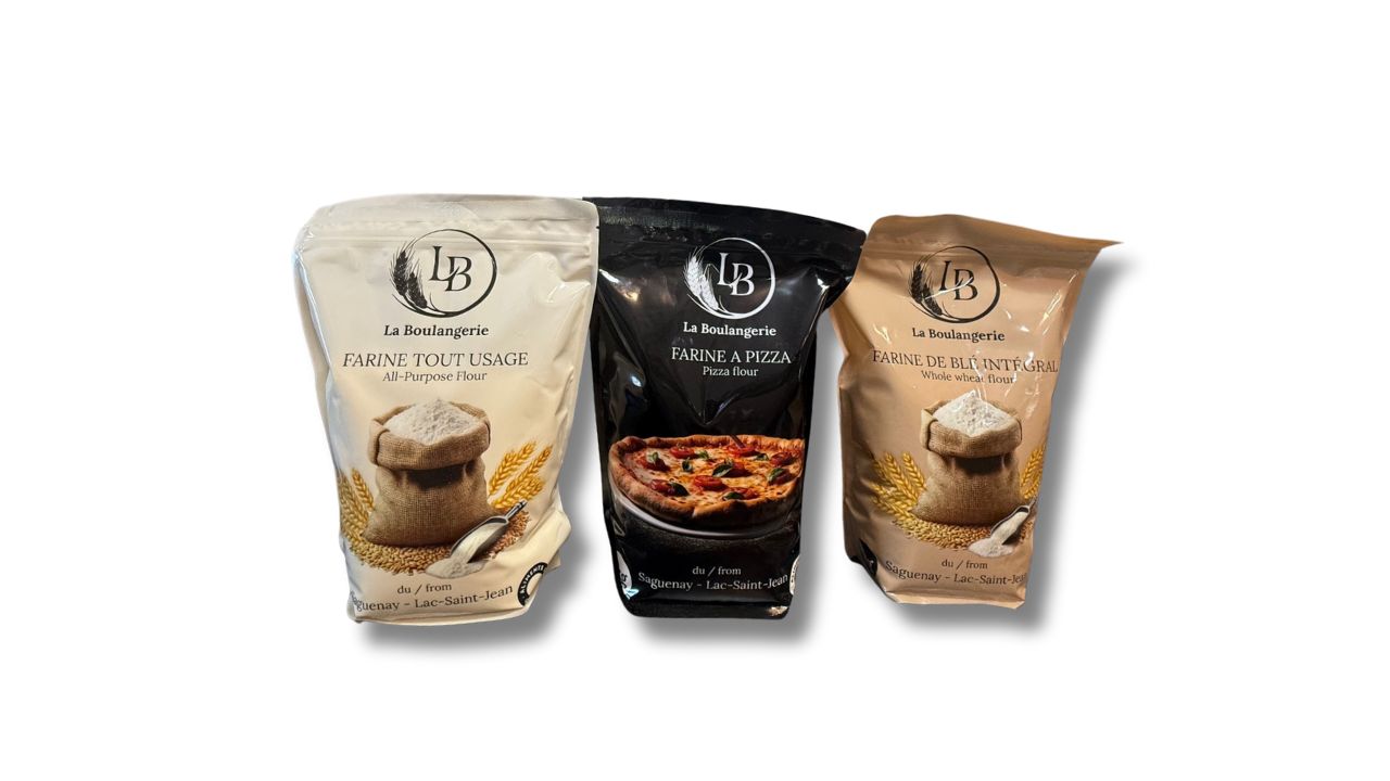 Le grand retour de la farine régionale, cette fois commercialisée sous la marque de La Boulangerie de Normandin : farine tout usage, farine à pizza et farine. Trois essentiels du quotidien qui mettent en valeur le savoir-faire local.